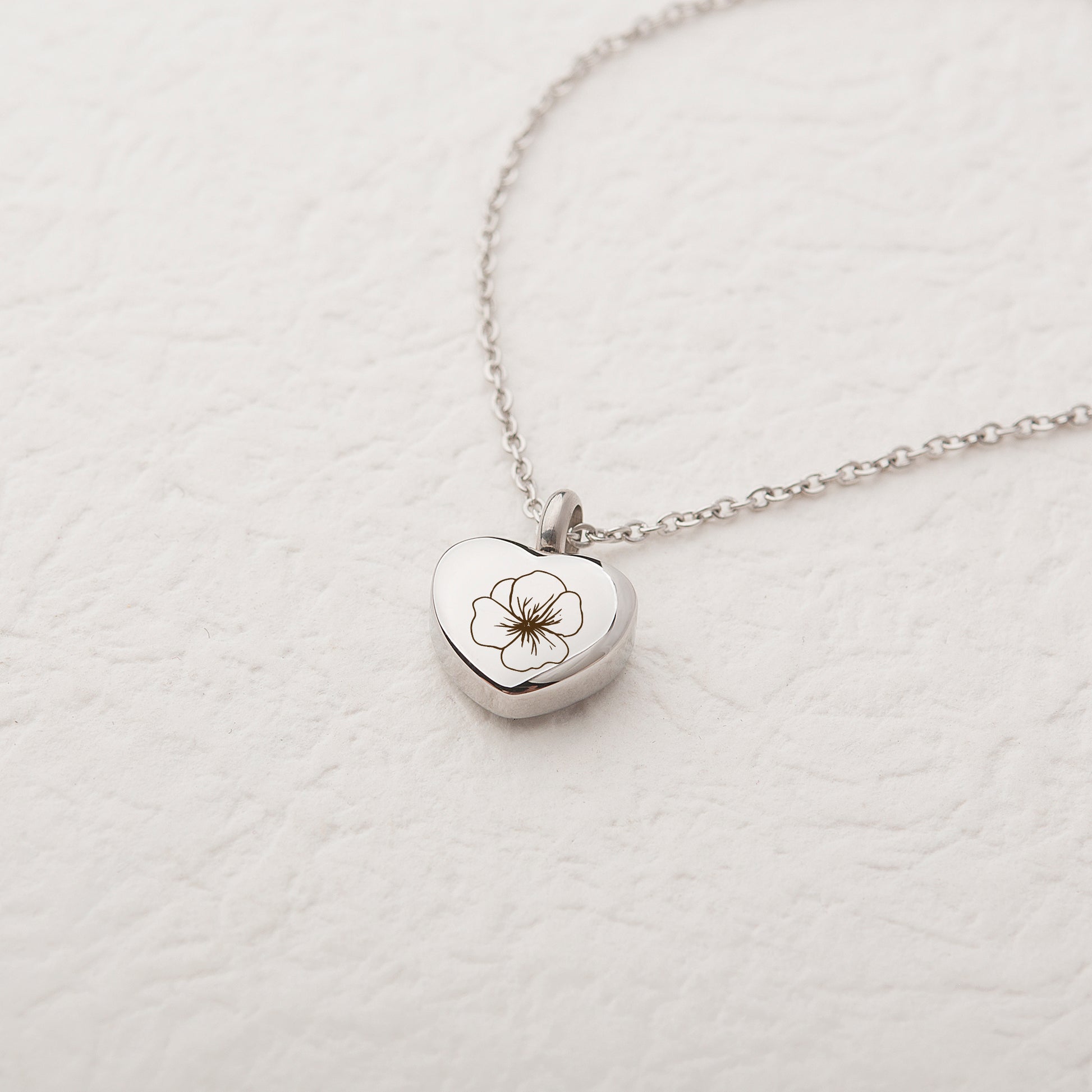 The front of the heart can be engraved with a meaningful birth flower, symbolizing their birth month and the unique bond you share. Thoughtfully crafted with a hidden compartment, this necklace offers both beauty and comfort, making it a heartfelt tribute and a lasting memorial to those who are no longer with you but forever in your heart.
