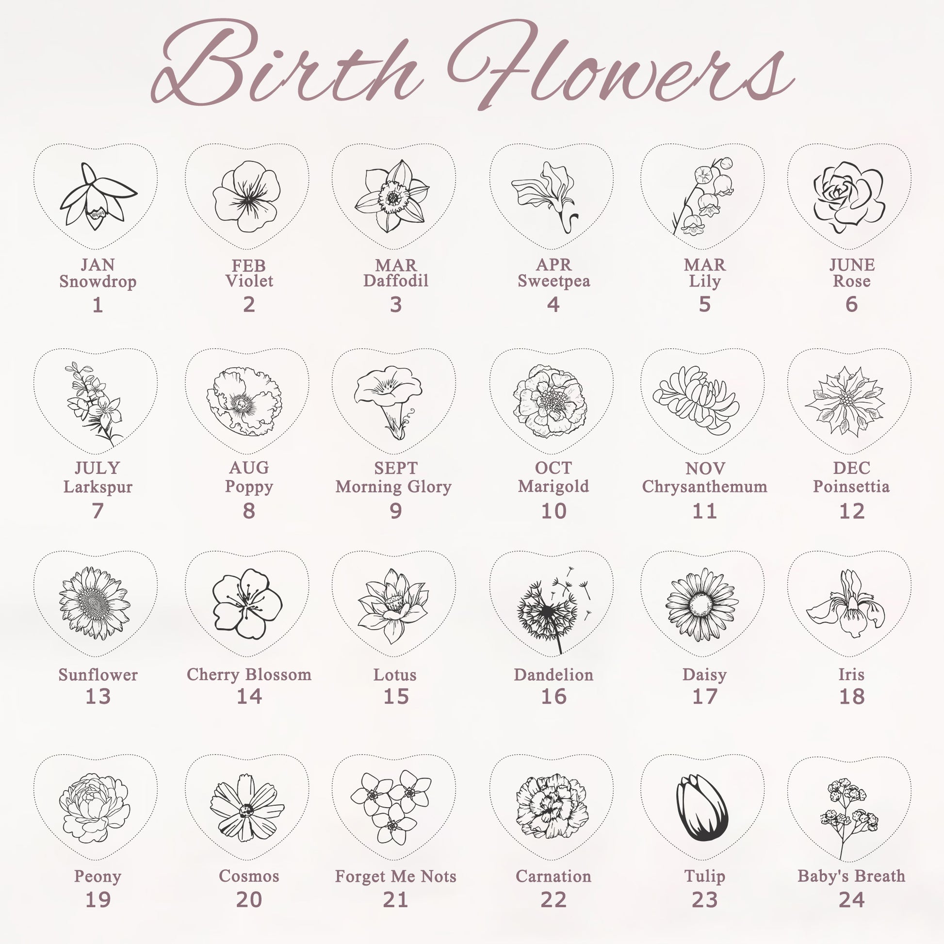 Birth Flower Mini Heart Memorial Necklace