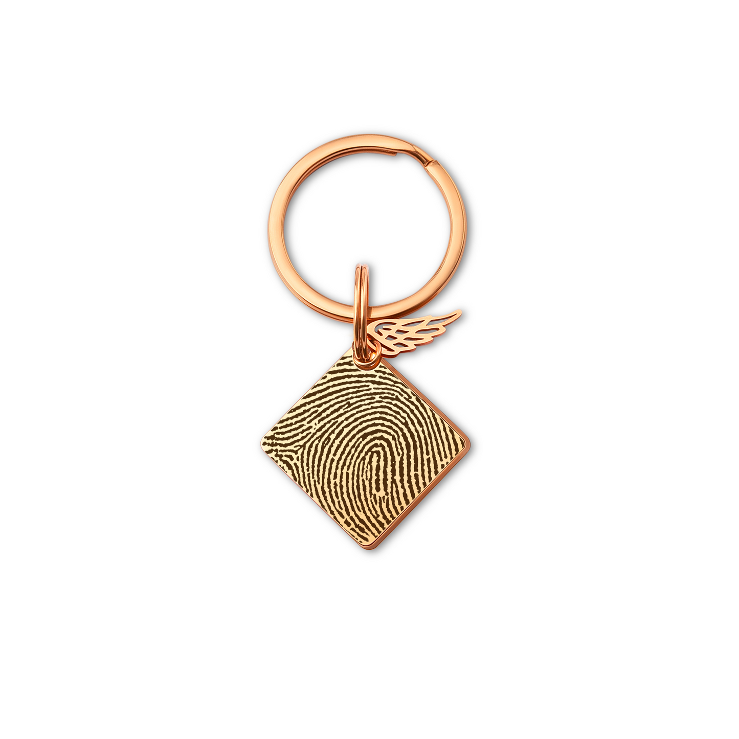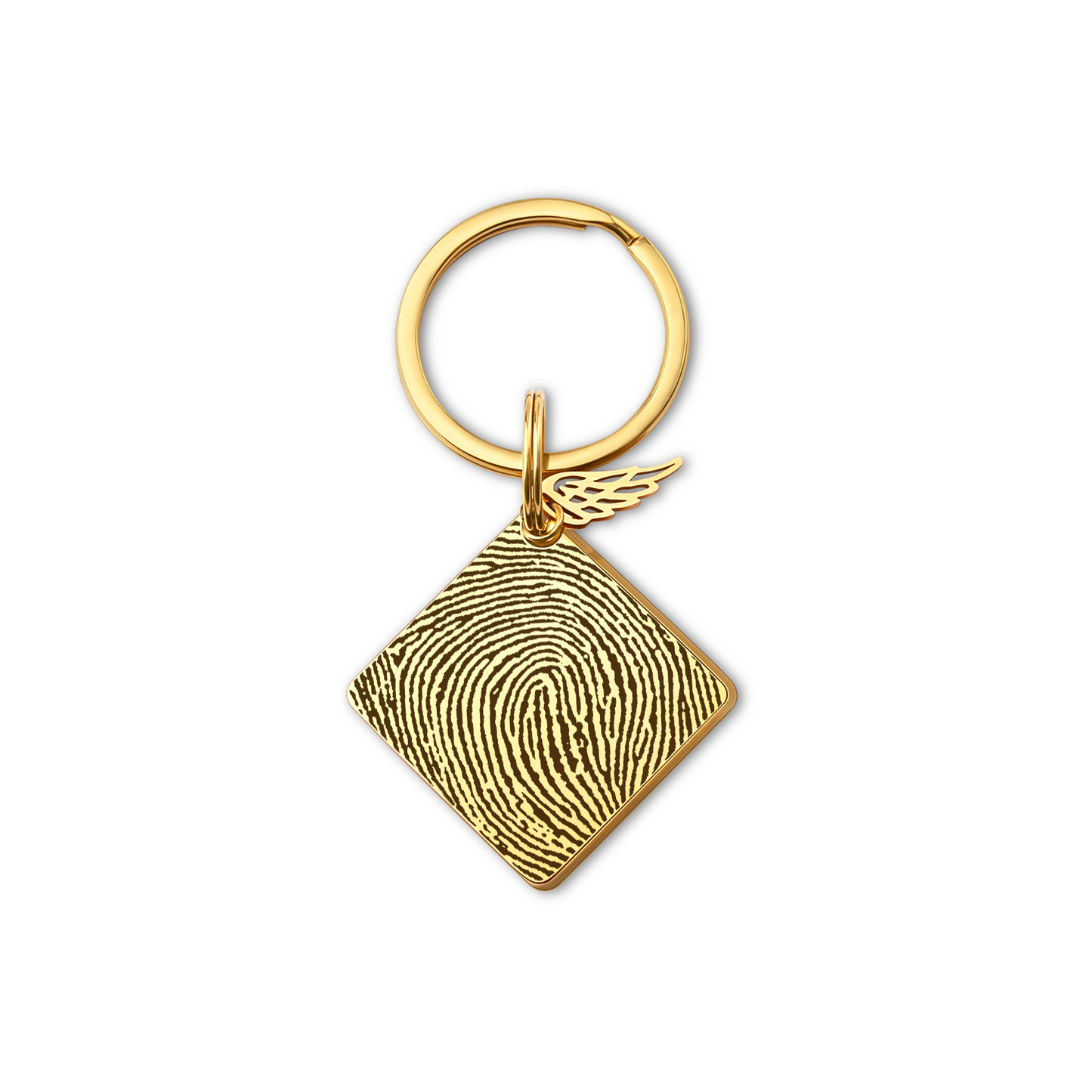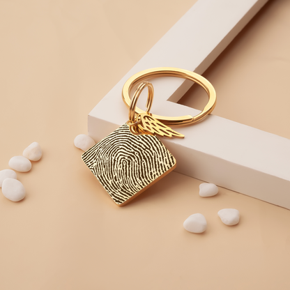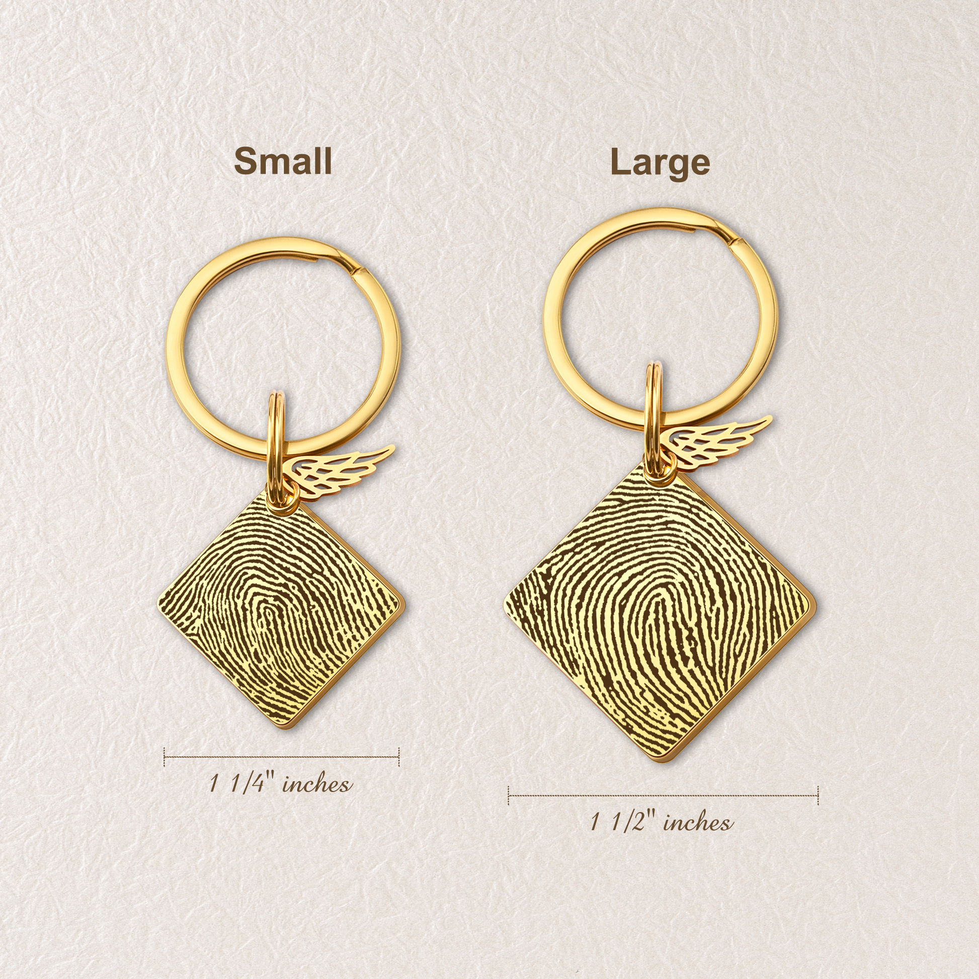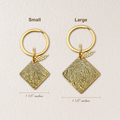 Fingerprint Diamond Memorial Key Chain with Angel Wing Charm