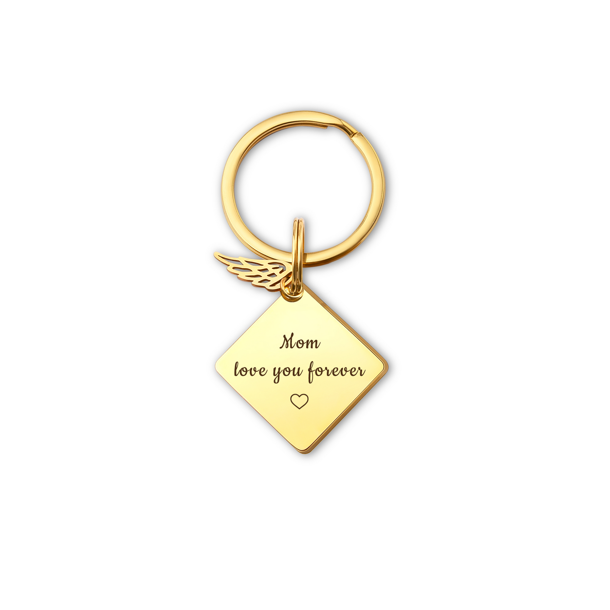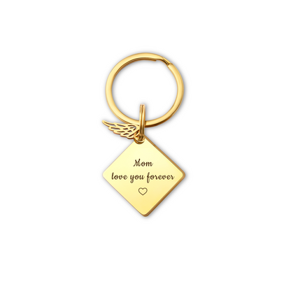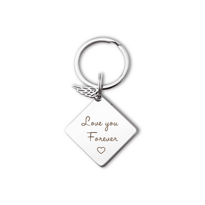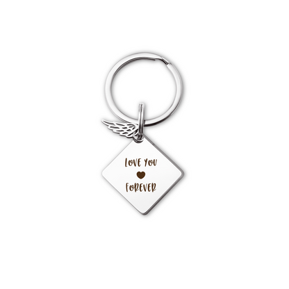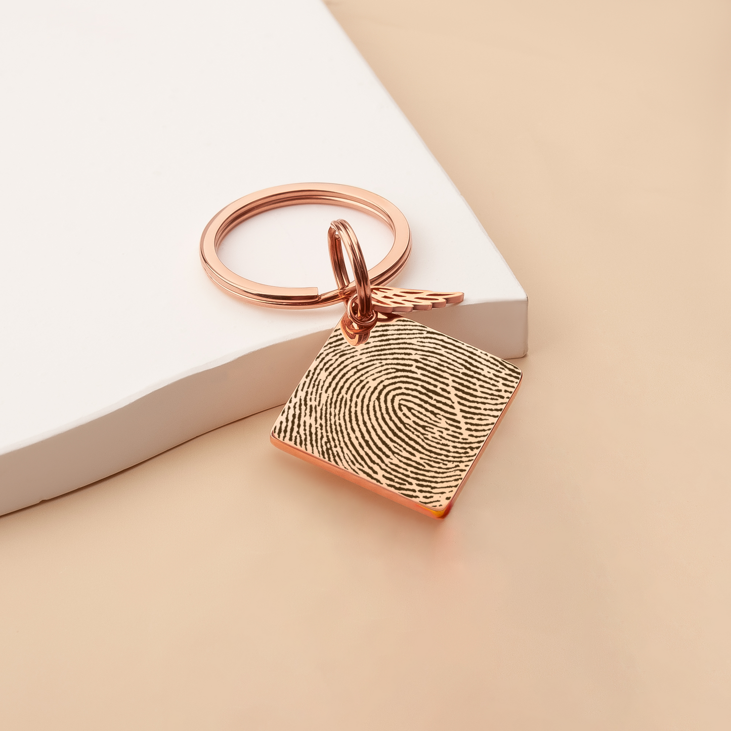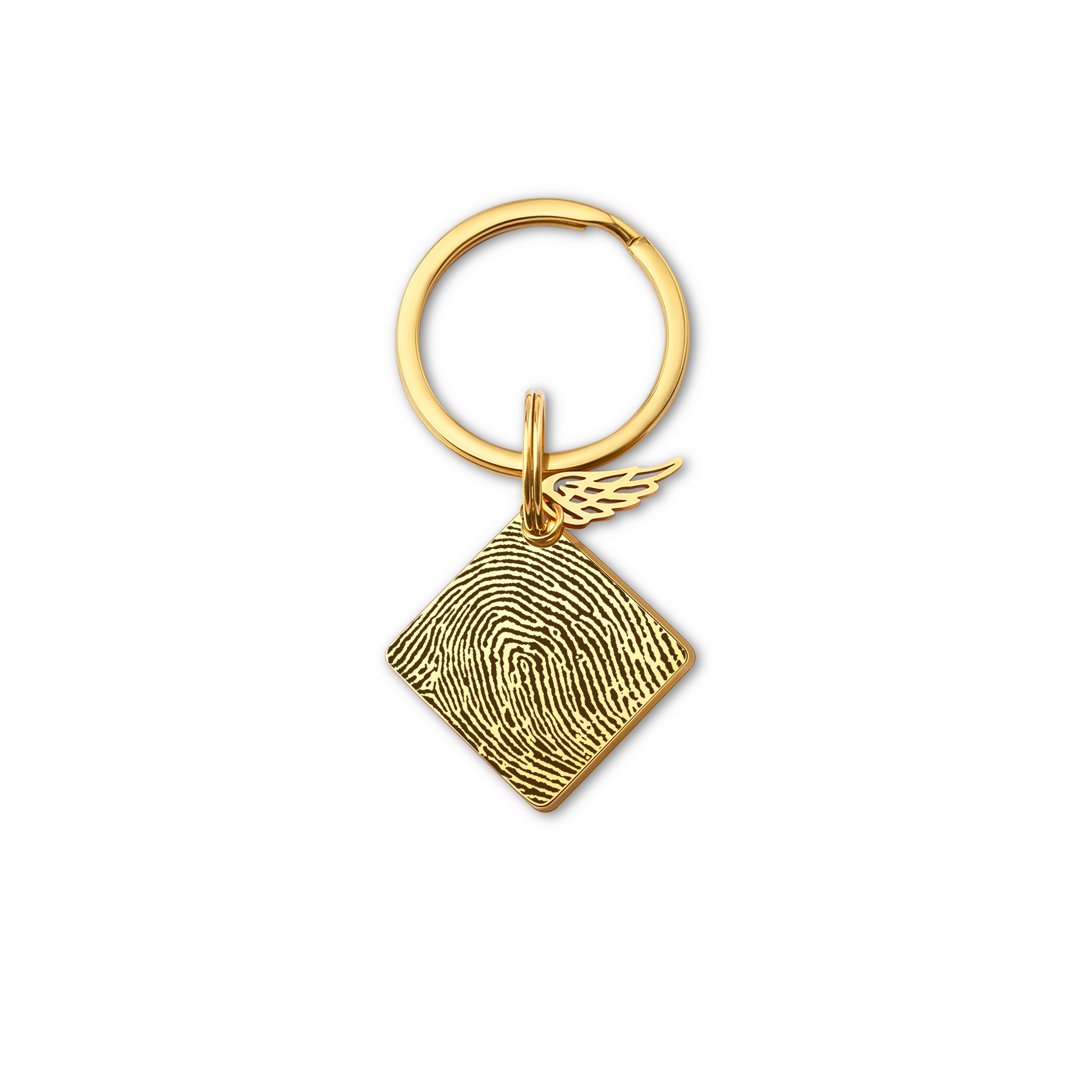 Fingerprint Diamond Memorial Key Chain with Angel Wing Charm