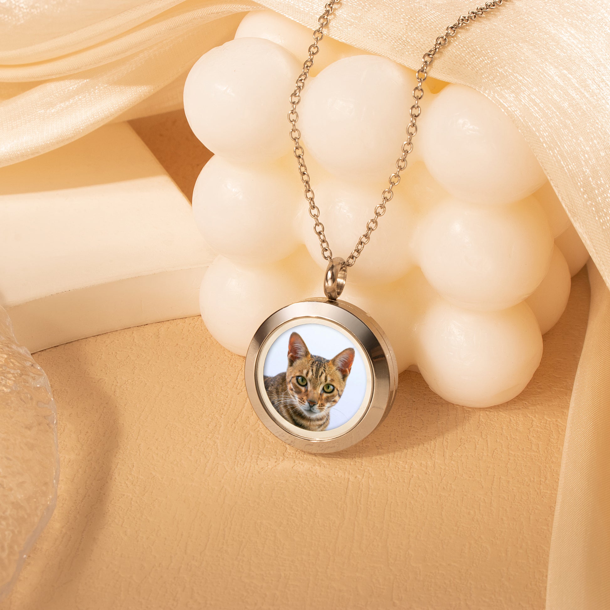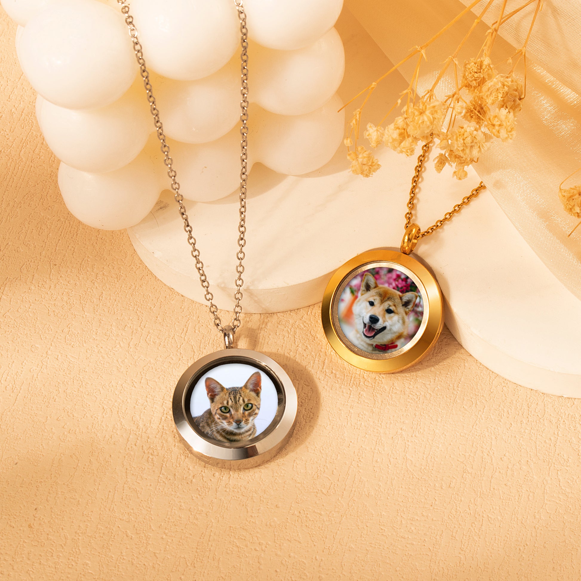 Keep the memory of your beloved pet close to your heart with our Round Glass Pet Memorial Photo Locket Necklace. Thoughtfully designed for those mourning the loss of a furry friend, this elegant necklace turns your favorite pet photos into a lasting symbol of love and companionship.