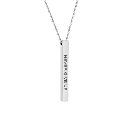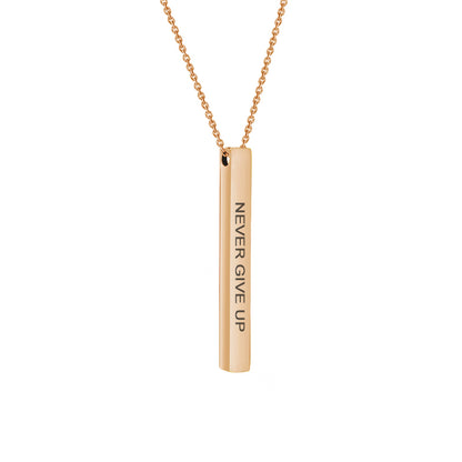 Carry words that move you—wherever life takes you. Our 4-Sided Bar Necklace is thoughtfully designed to keep inspiration close to your heart. Engraved with a motivational quote on the front, this sleek piece offers four polished sides of potential: wear it as-is or add your own custom touch.